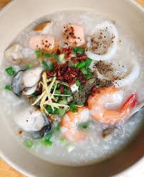 Cháo sánh nhẹ, tôm mực giòn ngọt, ngao dai mềm, nấm rơm sần sật, vị vừa vặn, dậy chút cay từ ớt, hạt tiêu. Món này đủ chất dinh dưỡng lại dễ ăn vào những ngày nóng.